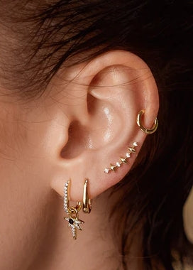 Features:Star drop huggie earrings, black onyx centre stone, Cubic Zirconia, Sterling Silver Gold Plating, Earring Size: 14mm x 10mm