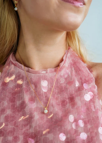 Features:Wisteria Created Opal Pendant, delicate claw-set created opal, approximately 5mm in size, Necklace 41cm chain with a 5cm extension, Sterling Silver Gold Plating