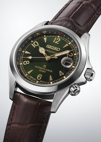 SEIKO PROSPEX ALPINIST AUTOMATIC GREEN DIAL BROWN LEATHER SPB507J
