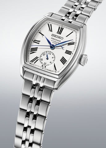 SPB537 Classic Series Enamel Dial, A new creation in the Presage Classic Series with an enamel dial fuses Japanese artisanal techniques with the refined elegance of a tonneau-shaped dress watch. The exquisite enamel dial offers remarkable depth and beauty, creating a rare harmony between a centuries-old Japanese craft and contemporary watchmaking.