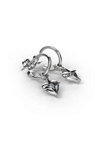 Stolen Girlfriends Clubs Celestial Heart Sleepers channel love and direction through sculpted hearts and star-kissed points. Cast in high-polish sterling silver with a single blue stone, they echo the metaphysical promise of clarity and connection.