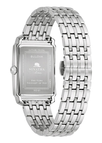 This enduring design from Bulova's Frank Sinatra collection is inspired by classic Bulova model from the legendary crooner's heyday. The watch features a 21mm silver-tone stainless steel case with a curved sapphire crystal with anti-reflective coating, a case back engraved with the Sinatra logo and The Very Thought of You, and a matching 7-row bracelet with a push-button deployant clasp. As classic as Sinatra himself, this Bulova gents watch offered in a custom Frank Sinatra box is a timeless addition with style that will last a lifetime.
