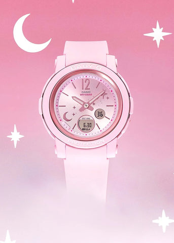 CASIO BABY-G DUO MOON & STARS SPARKLE DIAL PINK RESIN BAND BGA290DS-4A